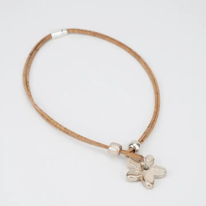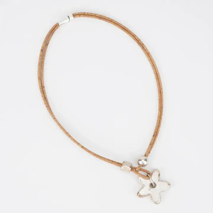 Cork Necklace with Beige Ceramic Daisy